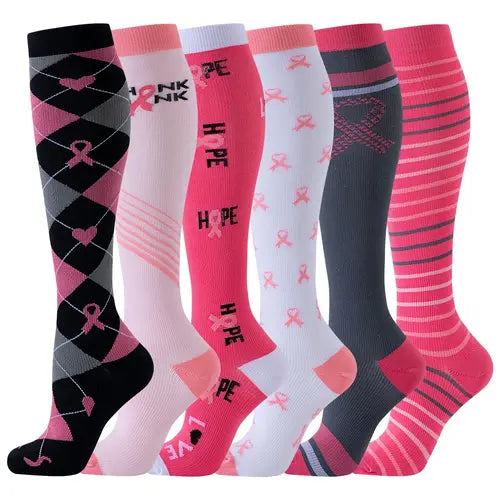 6 Pairs Happy Compression Socks 20-30 mmHg- style #620