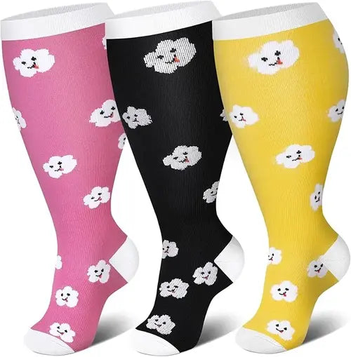 3 Pairs 2XL/4XL Happy Compression Socks Wide Calf 15-20 mmHg- Style #325