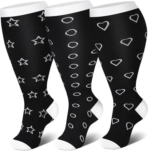 3 Pairs 2XL/4XL Happy Compression Socks Wide Calf 15-20 mmHg- Style #330